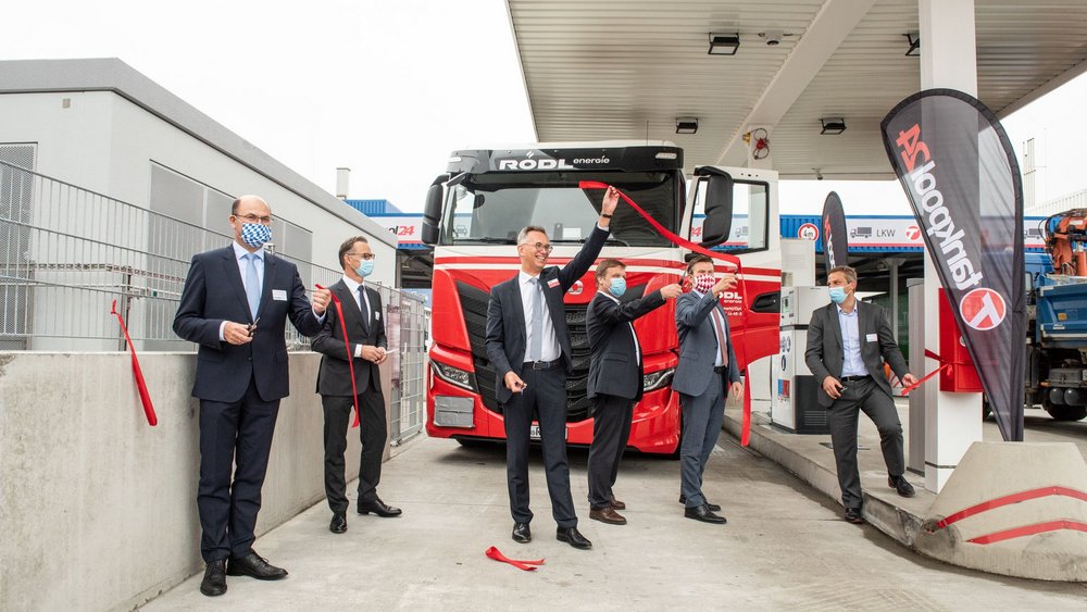 Seit Juli ist die erste LNG-Tankstelle der Metropolregion Nürnberg in Betrieb. Der Neumarkter Energielieferant BERGMÜLLER + SCHREIBER und die Münchener BayWa Mobility Solutions GmbH (BMS), eine hundertprozentige BayWa Konzerngesellschaft, haben die Tankstelle gemeinsam am verkehrsgünstigen Standort im bayernhafen Nürnberg errichtet. Gestern eröffneten Staatsminister Albert Füracker, Oberbürgermeister Marcus König, Wirtschaftsreferent Dr. Michael Fraas, Stefan Rödl, Geschäftsführer BERGMÜLLER + SCHREIBER, Matthias Taft, Vorstandsmitglied der BayWa AG, und Joachim Zimmermann, Geschäftsführer von bayernhafen, offiziell die Tankstelle in der Mülheimer Straße 17.